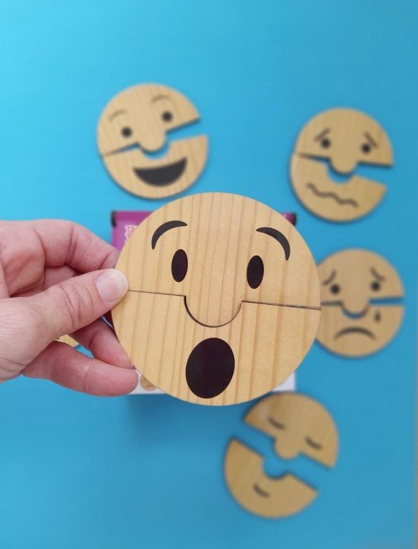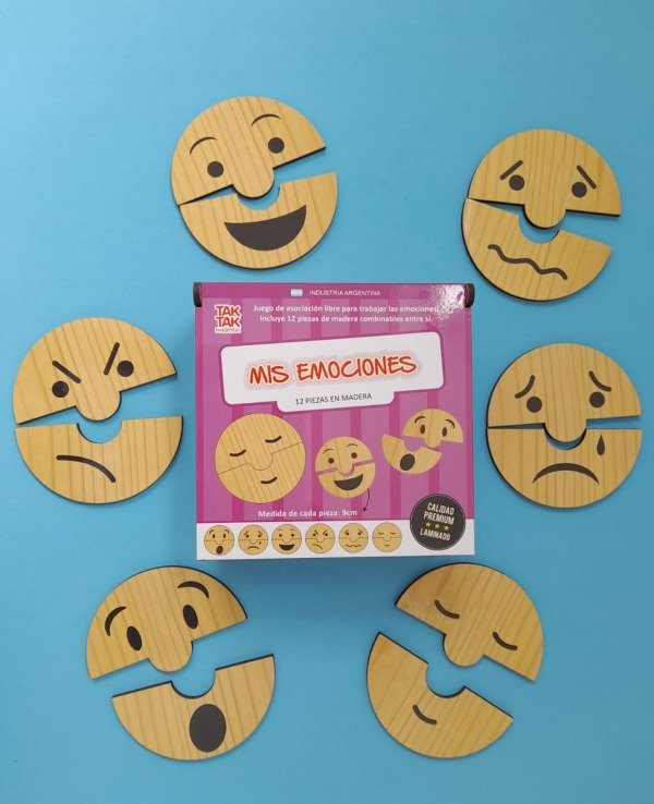 Juego de asociación libre en madera para trabajar las emociones. 12 piezas.
