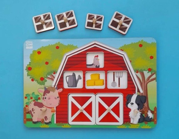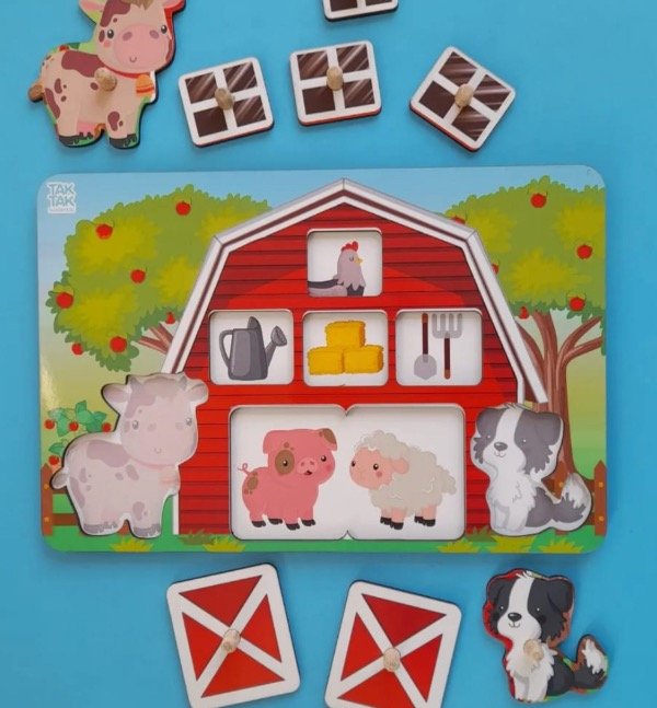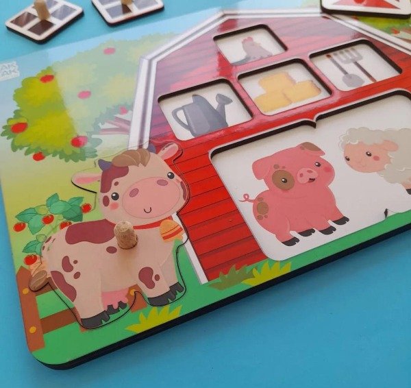 Rompecabezas en madera con perillas con adorables animales de granja.